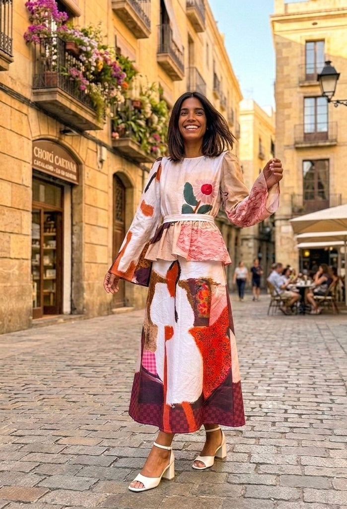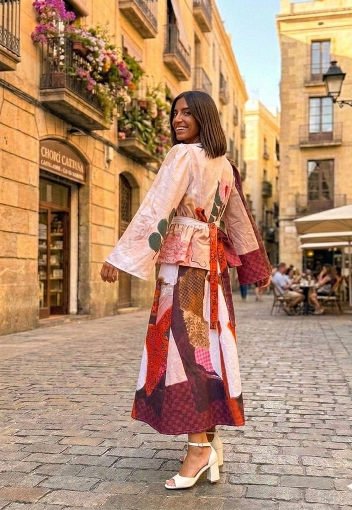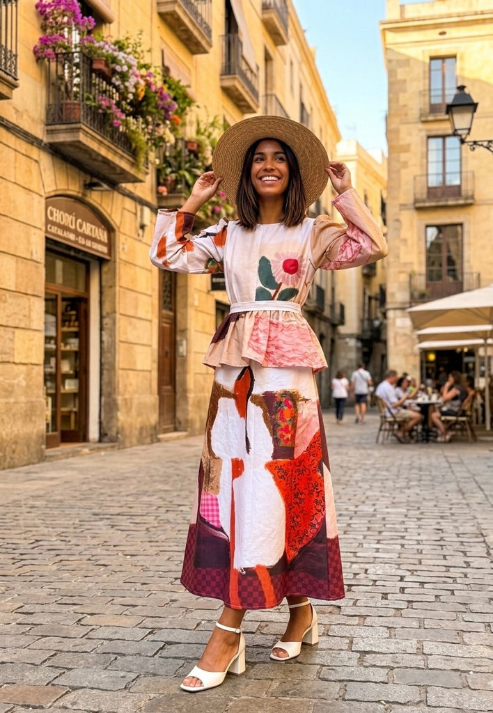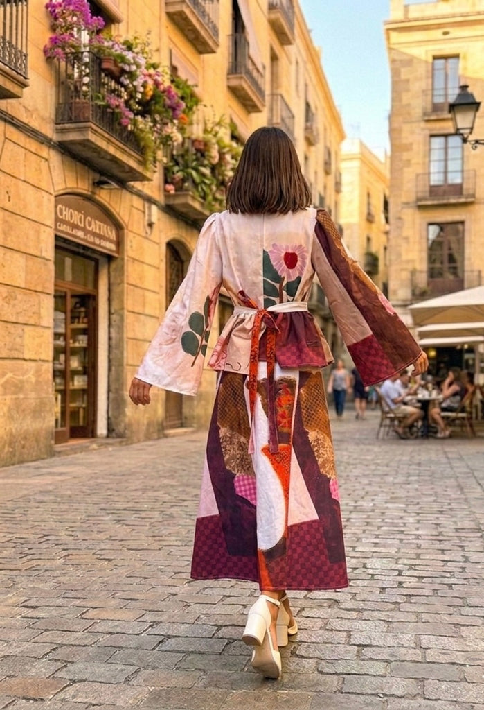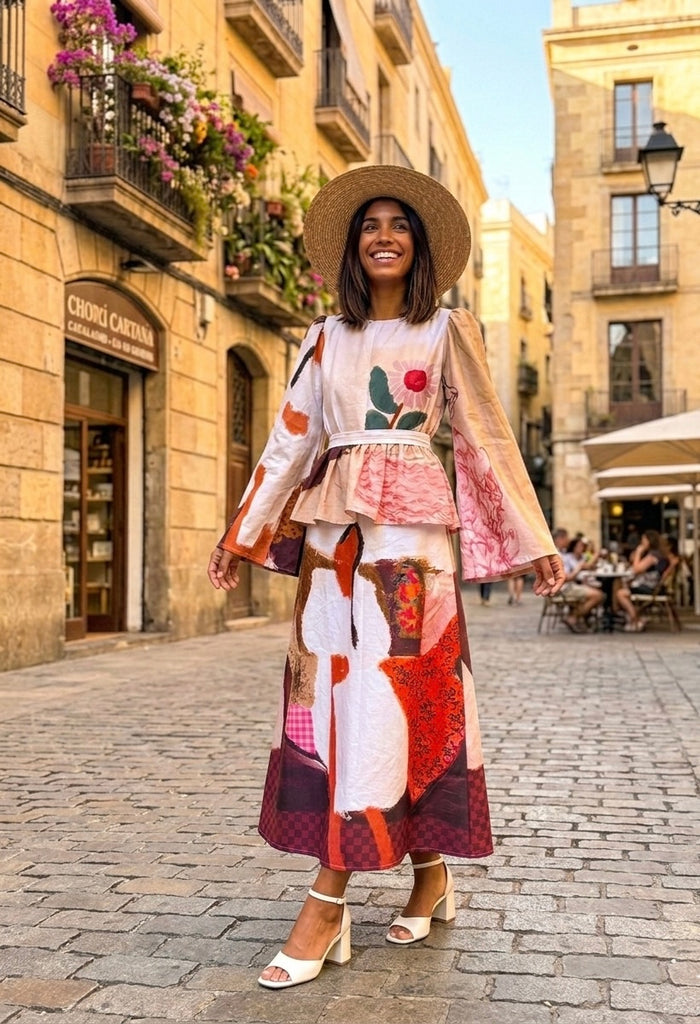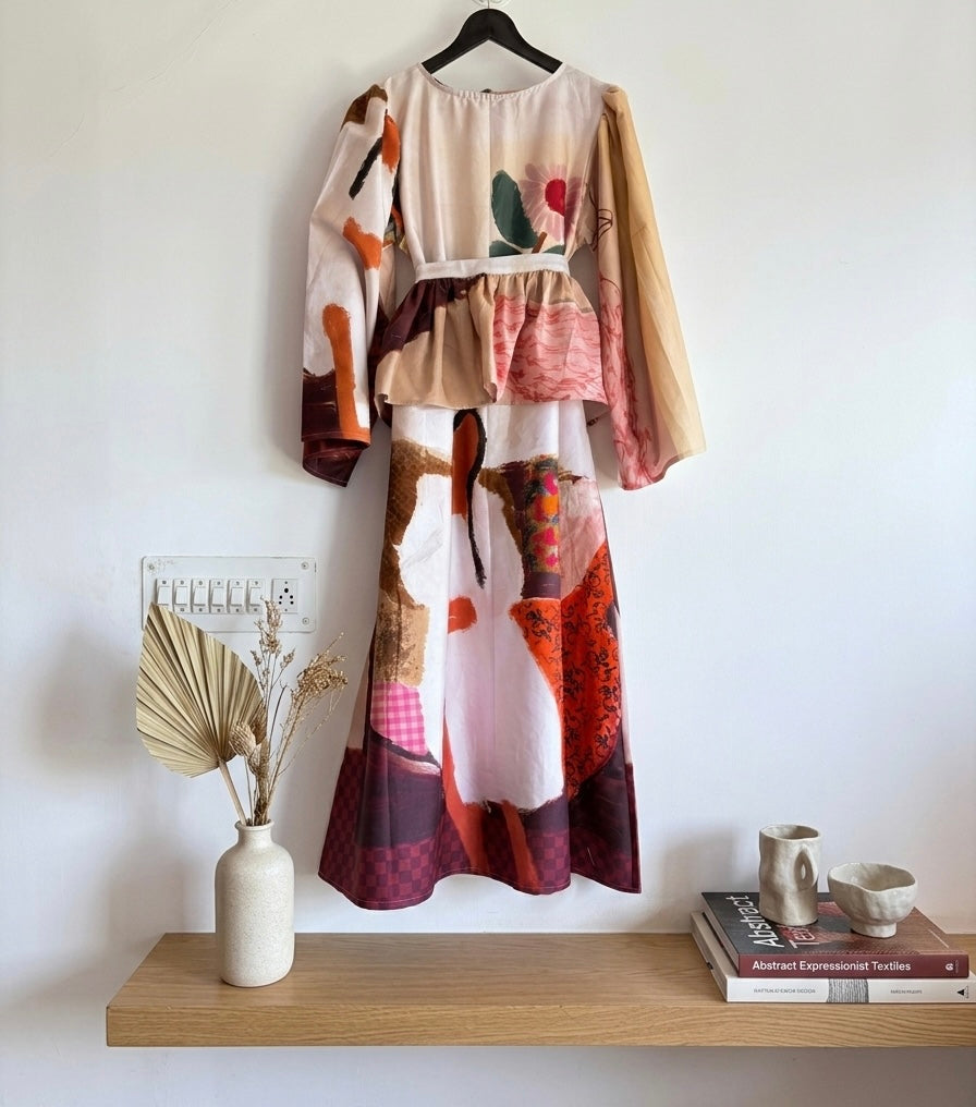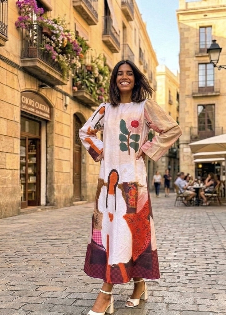 Features the “ girl on sofa & floral painting “ print , bell sleeves & frill belt makes it a statement piece for every occasion,l! Be it day out with your girls or dinner at sunset point , this dress is a wearable work of art !