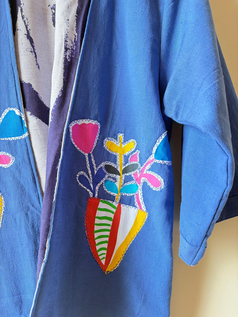 Appliqué work ( flower pot illustration is appliquéd on fabric )